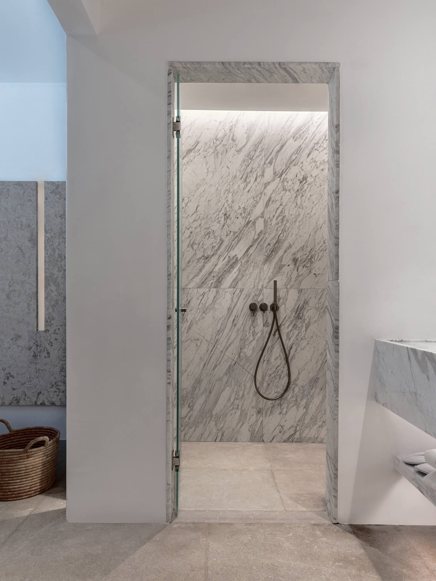 - Marble-Clad Bathroom