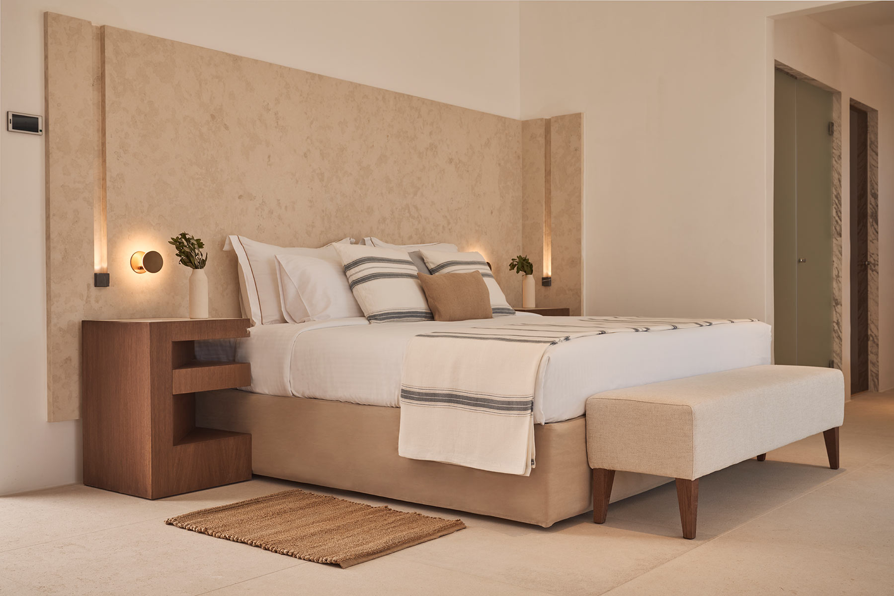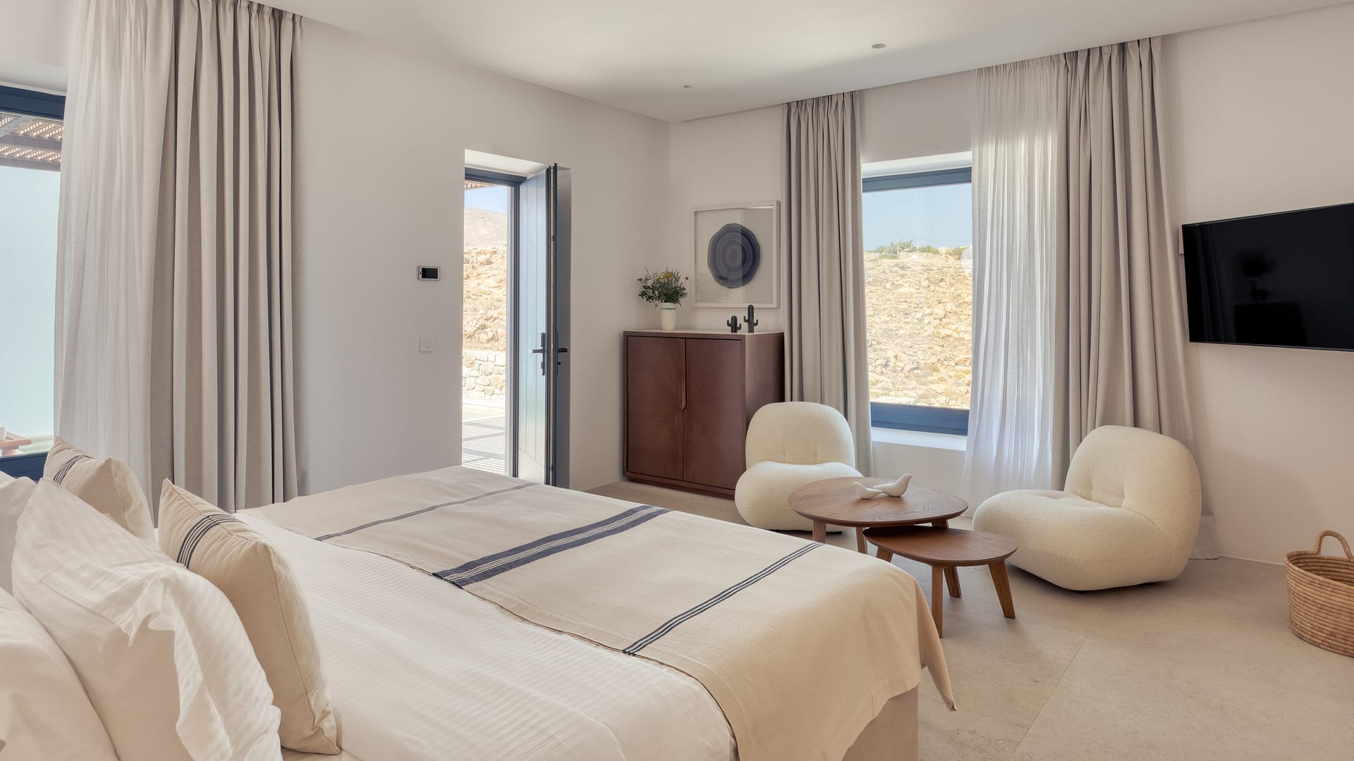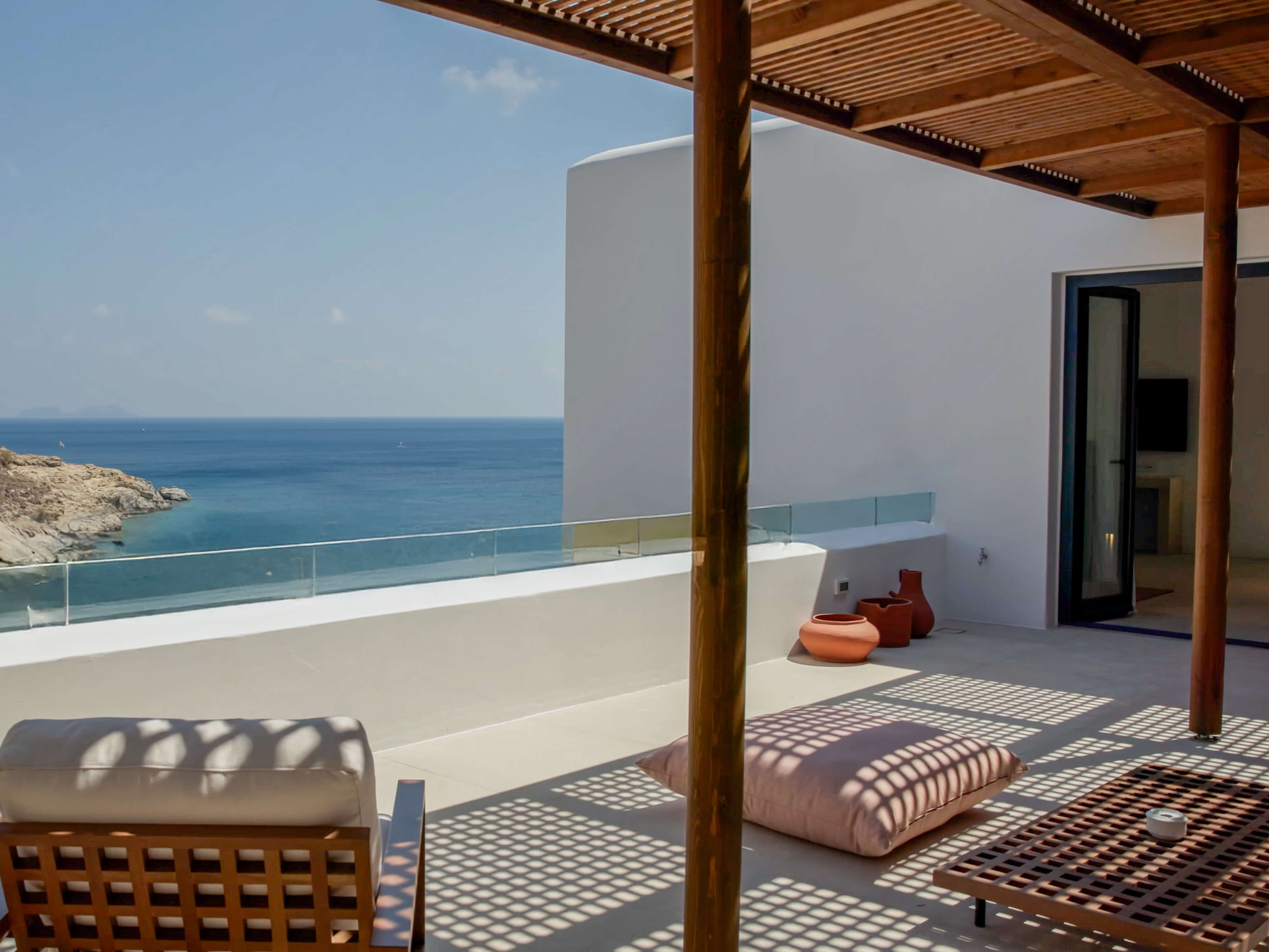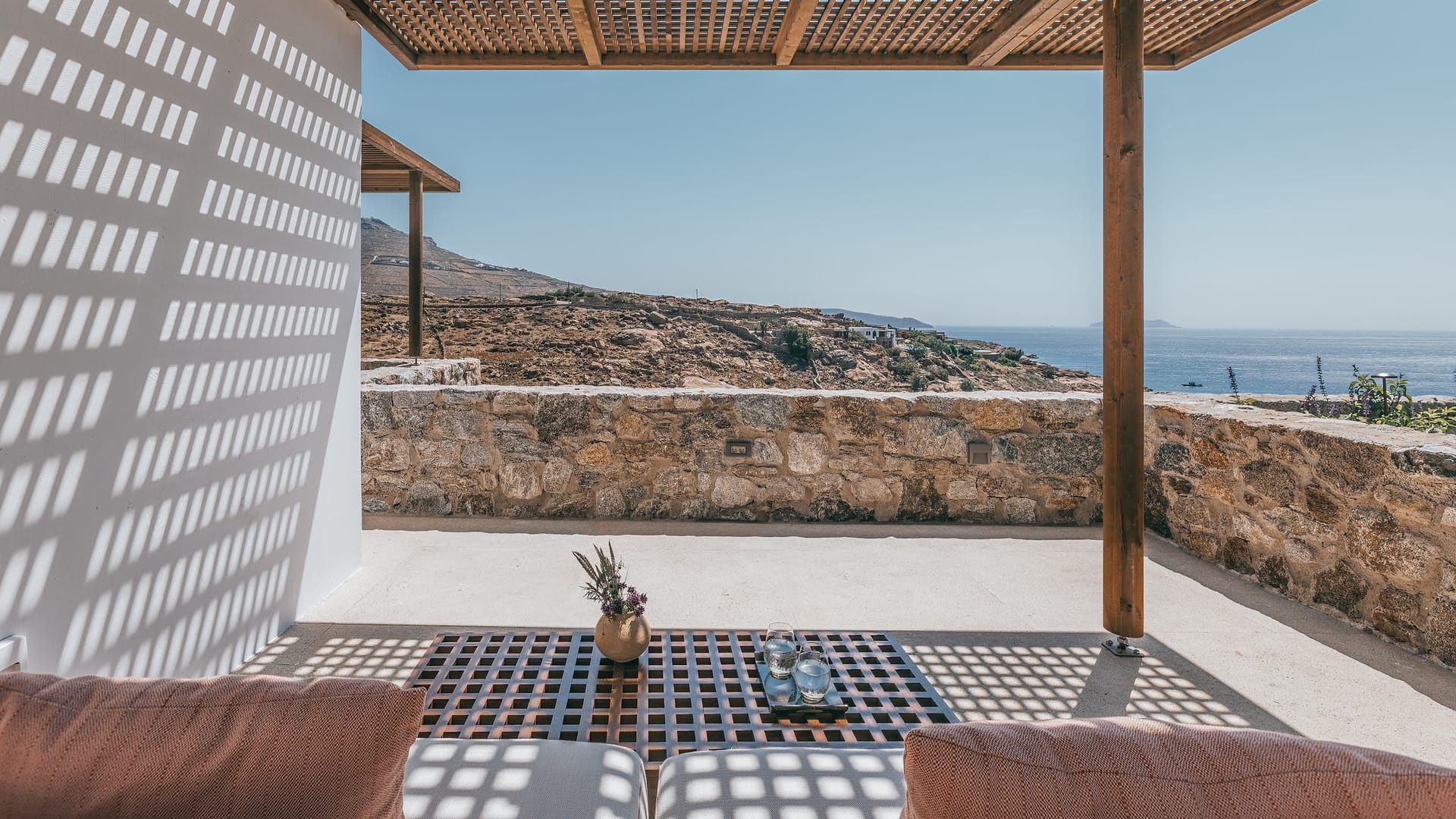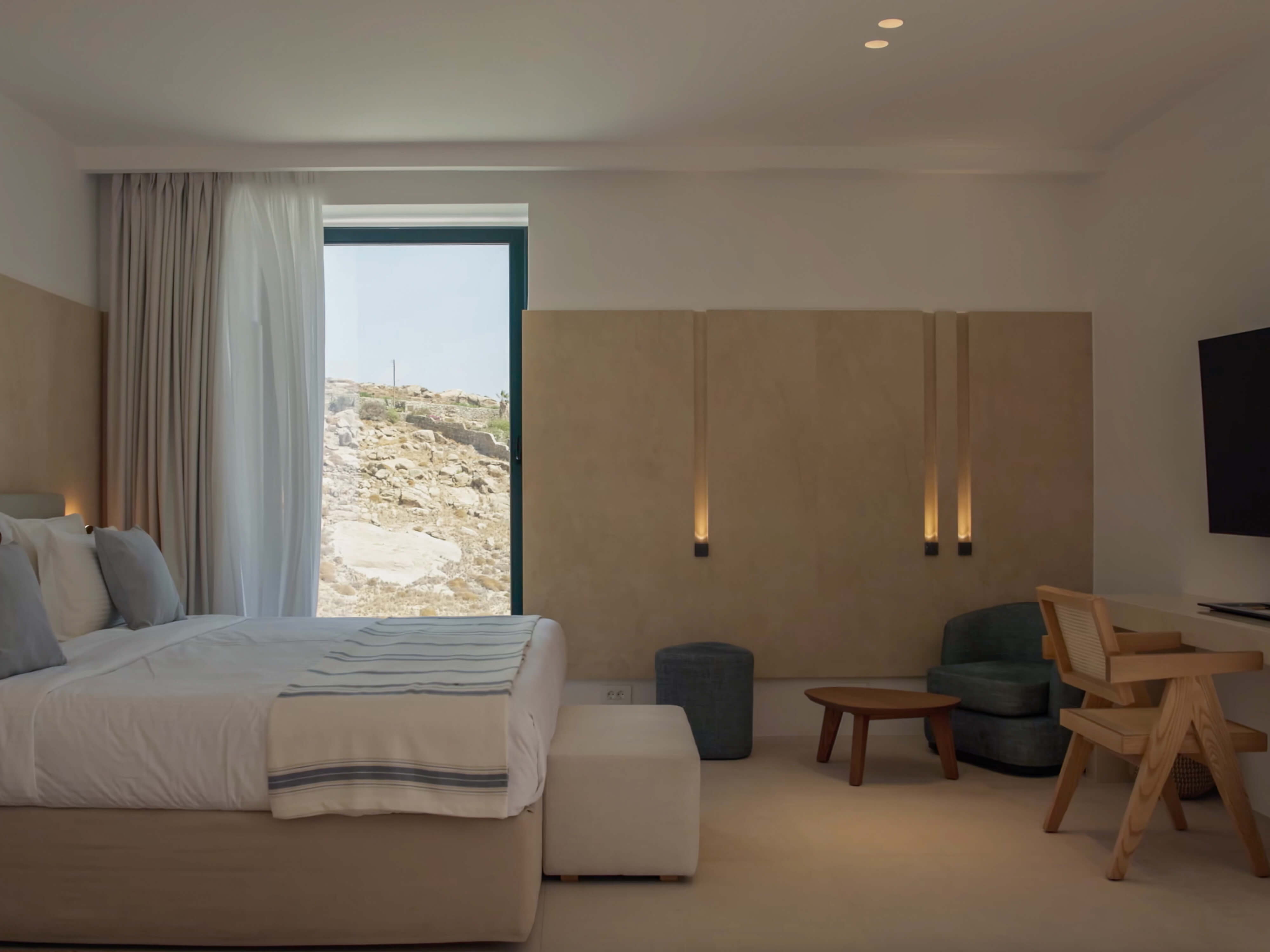Relax in an intimate hideaway where marble meets mountain views. Light moves softly across the walls and out towards your private furnished terrace. Elegant and serene, it’s the perfect accommodation for couples or friends seeking calm and connection.