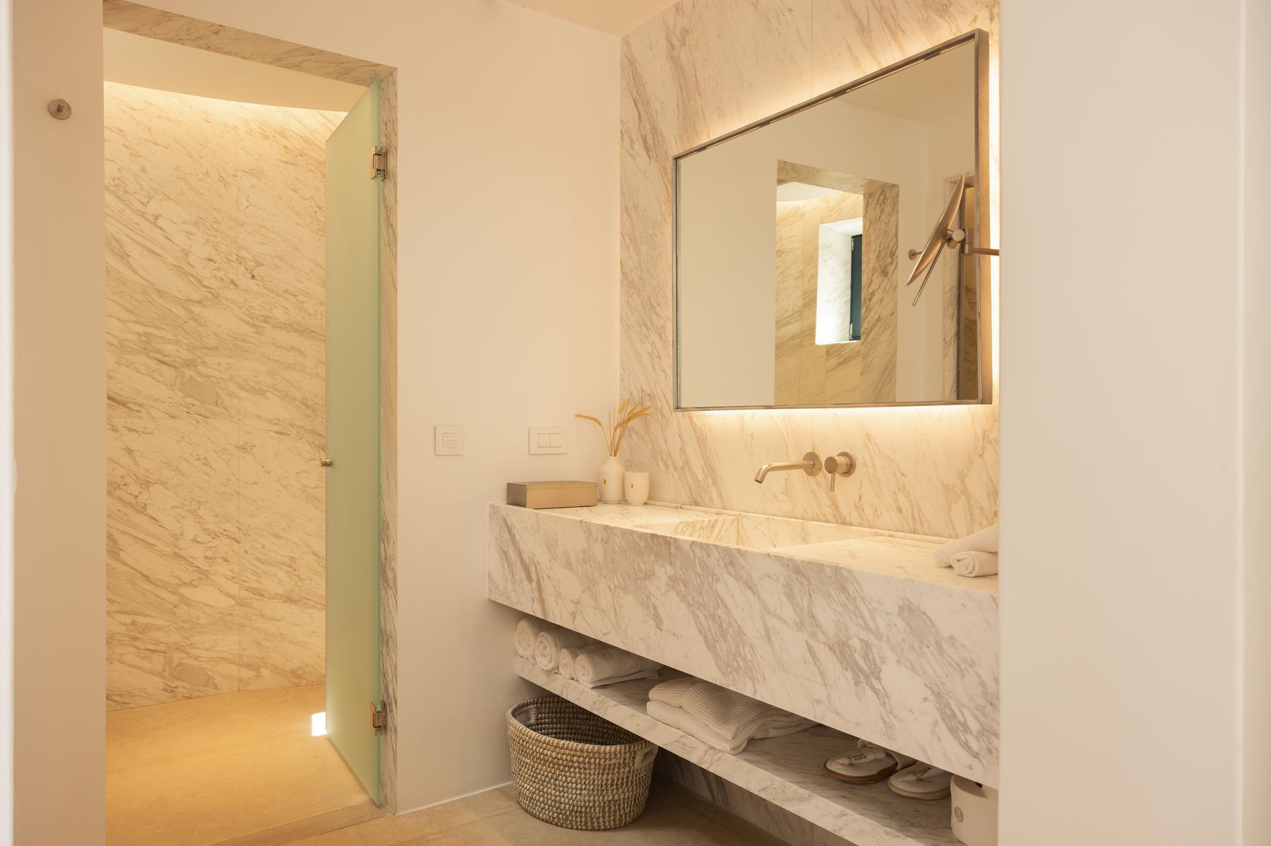 - Marble-Clad Bathroom