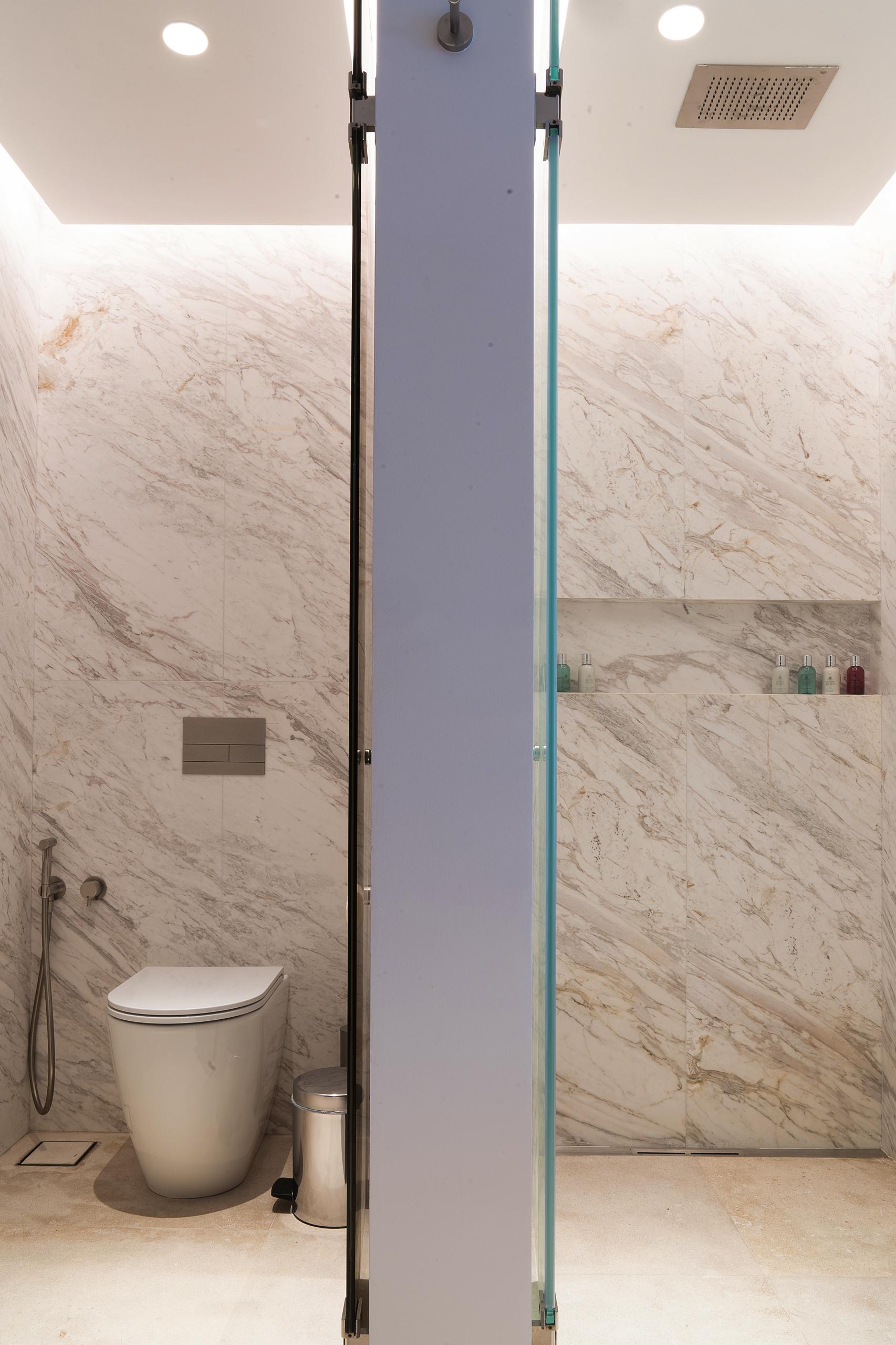 - Marble-Clad Bathroom