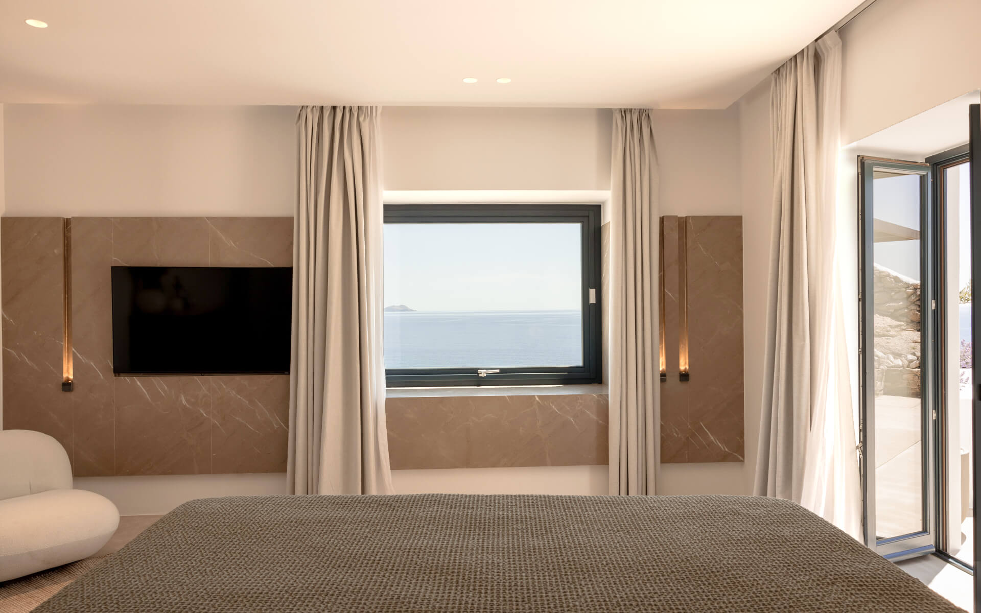 A lush hideaway inside and the endless reverie of nature out. The Cali Suite is a light-filled sanctuary with a grand bedroom and a lavish bathroom, complemented by a stunning sea-view terrace with a seawater pool to celebrate treasured alfresco moments.